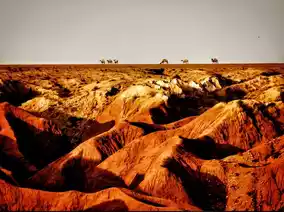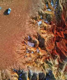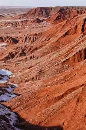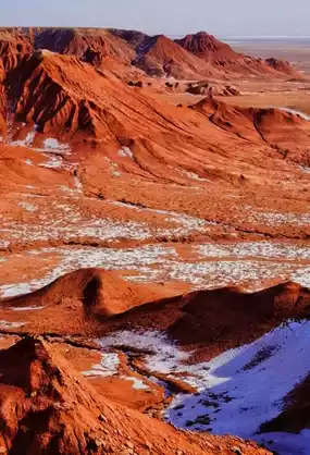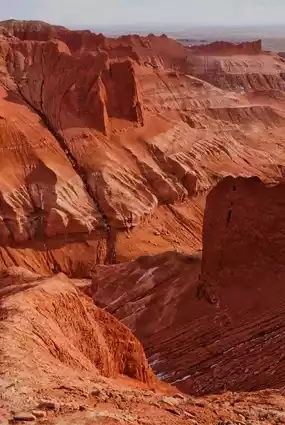 On the border between Inner Mongolia and Mongolia, there is a large red mountain [Dahong Mountain], which is surrounded by a reddish-brown color in the sun. Looking down, it looks like the red veins of the earth, which is very spectacular