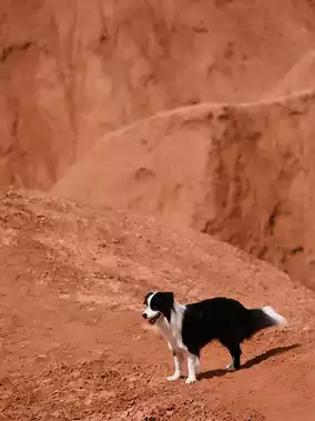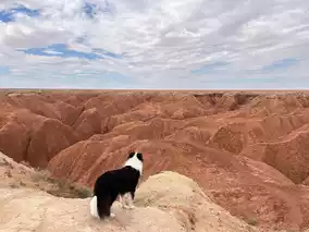 | Exploring the Danxia landform with a dog. 🚗To self-drive to Dahan Mountain, you need to download an offline 🗺️map in advance, as there will be no signal 📶 60 kilometers away from the destination.
