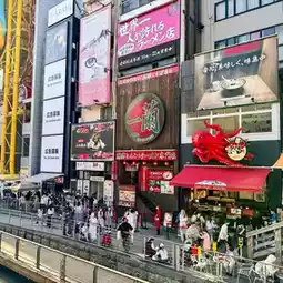 If you walk up to the main road (behind the Glico sign), walk to eat at sushi restaurants, famous crab restaurants, and takoyaki restaurants with many to choose from.