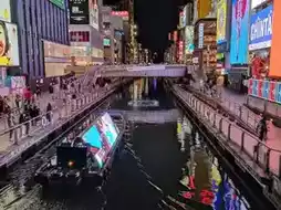 At night, the vibrant lights of the signs reflect on the water, allowing you to experience the true energy of Osaka.