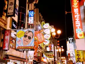 A neighborhood that everyone in Osaka must visit at least once. It's a hub of fun, excitement, and a truly "Osaka" atmosphere. As soon as you exit the Namba station, you'll see large neon signs lining the streets, especially the Glico sign, a prominent landmark. Visitors are sure to take a photo with their arms raised, imitating the sign. It's become a popular check-in spot that you can't miss.