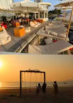 Once you arrive at the SunLounge dining bar, you can see its unique charm. The dining bar’s architectural style blends modern and maritime elements, with white walls paired with blue decorative lines, like the sea and sky intermingling. The restaurant bar is filled with tropical plants and is full of life. Its seaside location is excellent, sitting in the restaurant bar through the large floor-to-ceiling windows you can see the magnificent sea view and hear the sound of the waves. The beach is right next door, with fine sand shining in the sunlight.