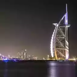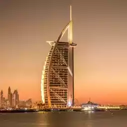 This hotel is called Burj Al Arab is a luxurious 7 star hotel situated on the beach of Dubai. The hotel inside can be accessed via taxi and you can enjoy a cup of afternoon tea or stay the night.