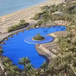 Located on Palm Jumeirah Island, an island built from reclaimed seawater in the shape of a palm tree.