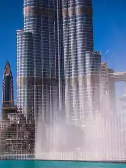 You will be treated to several things. Firstly, you will get an absolutely stunning view of the tallest building in the world: The Burj Khalifa. Secondly, you will be able to cool down and enjoy the fountain display with music. Enjoy the fountains shooting up towards this mighty skyscraper. It’s wonderful.