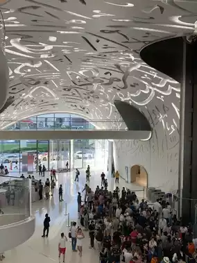 🇦🇪 Go see the Museum of the Future. In our opinion, the most beautiful building in the world. This torus shaped building can be seen from the train line near Burj Khalifa. Exit the metro at the Museum of the Future Station to walk through a unique tunnel and see it’s equally impressive lobby. Tickets to exhibits are around 40 USD, but seeing the lobby and exterior are free!
