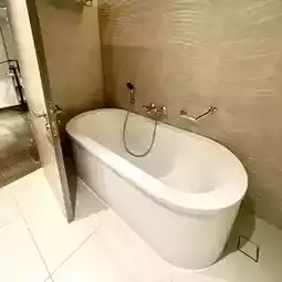 The room here has a large bathtub, so I was able to stretch my legs and relax.