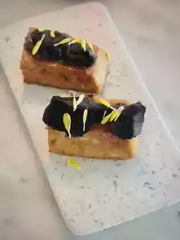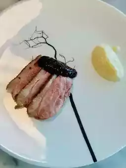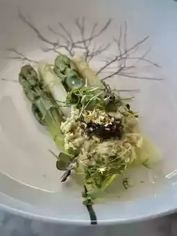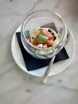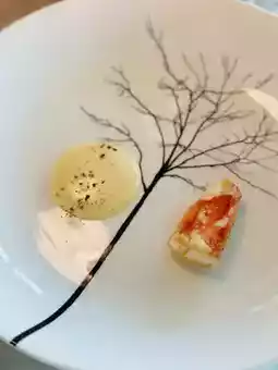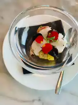 What's stunning is the open kitchen where chefs cook on-site, made to order. Once seated, you'll be handed a small piece of paper listing the Happy Hour dishes for the day, with four different options each day, never repeating, each dish is a presentation, like the enjoyment of a high-end restaurant, featuring Louis Roederer Champagne