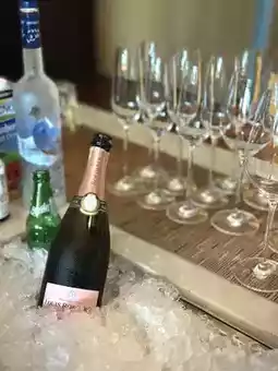The club's orientation faces the city skyline, and during the happy hour, you can sip champagne while gazing at the world's tallest building, the Burj Khalifa (Dubai Tower)