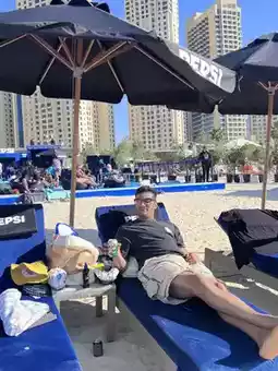 Basking in Dubai's JBR Beach vibes - sun, sand, and skyscrapers! #DubaiLife 🏖️☀️