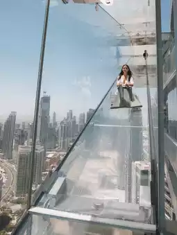 It's good to come to the observatory at this time because it's just opened and there are fewer people, so you can avoid the queues. The view from the Burj Khalifa is amazing, but be aware that you have very little time to take photos. You can go down on a 1x slide and we only had 5 seconds left to take photos on the glass... Yes, only 5 seconds!