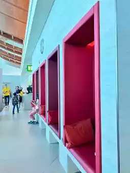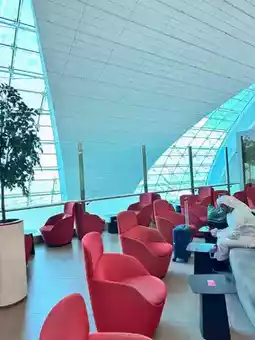 I had the opportunity to use the Marhaba Lounge at Dui. It looks great. There are a lot of food and drinks available. The staff are friendly and attentive. There are many seats to choose from. There are also rooms for families. I recommend it for anyone who has to catch a connecting flight in Dubai.
