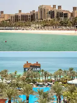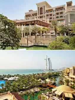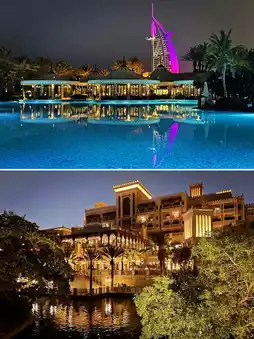 Dubai Madinat Jumeirah is the collective name for the four hotels under the Jumeirah Zabeel Saray Hotel, based on an Arabian castle, like a mini-city within Dubai, consisting of four hotels and a splendid open-air market - the hotels are: Jumeirah Zabeel Saray - The Palace, Summer Palace, and Palace as well as the Escape Palace, all distributed next to the Burj Al Arab. The ancient castle canal, these four hotels, and the Jumeirah Sailing Hotel, Beach Hotel are one of the most classic areas to experience the Arabian atmosphere in Dubai, and can be called a must-visit area!