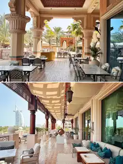 Besides the beautiful scenery - the dozens of restaurants at the Jumeirah Zabeel Saray Hotel are also not to be missed, with a world of gourmet food from around the globe. Today I'll share the unique Lebanese restaurant Al Nafoorah. Stepping into the restaurant - what catches the eye is the exquisite and elegant patterns, full of exotic atmosphere, as if entering a traditional Arabian palace - Al Nafoorah, mainly offering traditional Lebanese cuisine, will definitely give you a new understanding of traditional Arabian food! The restaurants at the Jumeirah Zabeel Saray Hotel each have their own characteristics - there is also an overwater Italian restaurant Pierchic that I highly recommend! It is also known as one of the most romantic scenic restaurants in the world, with a superb view of the Burj Al Arab from the sea - and it's absolutely beautiful at nightfall!