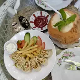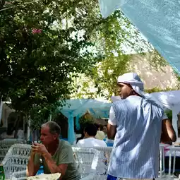 The restaurant is very Middle Eastern, the environment is beautiful, there are outdoor and indoor locations, although the weather was hot that day, but we chose to sit outdoors because the photos were really too beautiful, and there are many fans nearby, so it was not too much.