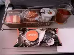 We had two meals on the plane, breakfast and lunch! The apricot pie was very delicious🍑 The fruit was also fresh and very delicious, so I ate a lot!