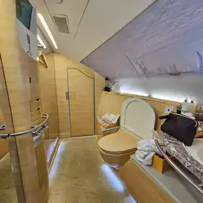 The privacy and comfort of my own suite provided an oasis of tranquility amidst the skies. The suite was impeccably designed, offering a perfect blend of elegance and functionality, ensuring a restful and enjoyable flight.