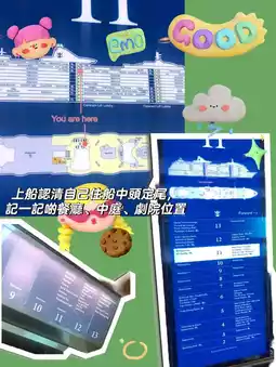 3) Once on the boat, the most important thing is to know where to distinguish where the bow and stern of the boat, remember which floor you live, and note the location of the restaurants, buffets, theaters, atrium. The escape drill after boarding the ship must be necessary to report, not will be called name expansion, you alone will not be able to sail the ship.