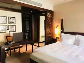 I chose the Palace Downtown Hotel. The hotel has a unique geographical location, next to the Dubai Mall, across the water from the Burj Khalifa, and connected to the world's largest musical fountain. This also makes the hotel crowded, with many tourists taking photos, and the privacy is not good enough. I stayed in a standard lake view room, which cost CNY 2,500 including tax during peak season. The cost performance is not as good as that of hotels in Abu Dhabi. The best room should be the suite where Ning Jing stayed in the TV show "Divas Hit the Road," which faces the musical fountain.
