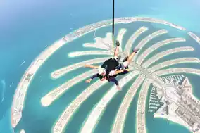 My mouth was open, and the wind blew it out of shape, so I won't show it. There is no strong sense of weightlessness. After 50 seconds of free fall, the parachute will open, and you will be pulled up more than 100 meters instantly. Then you will slowly descend, overlooking the Palm Jumeirah and the World Islands. Amazing!!!
