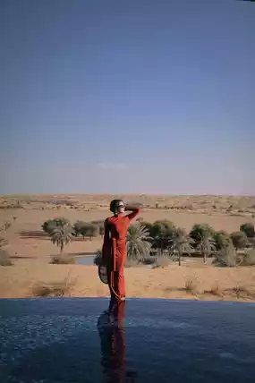The hotel is located deep in the Dubai Desert Conservation Area. The pure and pristine desert landscape surrounds the hotel tightly, forming a secluded and peaceful paradise.