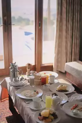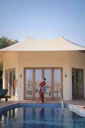 The hotel architecture is the perfect combination of traditional Arabian style and modern luxury. The unique Arabian tent villas are scattered across the desert.