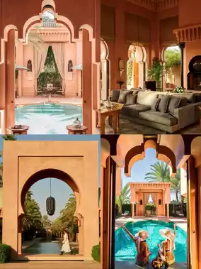 🔹Located in Marrakech, known as the "Desert Lady," nestled among olive and palm trees with stunning views of the Atlas Mountains.