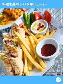 A cafe restaurant for tourists with a wonderful atmosphere and service. The food was plentiful and everything we ordered was delicious! The Arabian Tea House Special Wrap recommended by the staff was a soft and juicy grilled lamb and vegetables wrapped in bread and grilled with butter, which was great. The accompanying fries were also delicious and filled us up. If you ask the staff for the wifi password, they will tell you. You can also use credit cards.