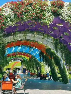 The flower version of the A380 giant airliner, which set a Guinness World Record, is a must-see attraction. This masterpiece covered with 500,000 flowers and plants was jointly created by Garden and Emirates Airlines to take you to spring. In the beautiful Butterfly Garden, there are 15,000 butterflies in nine customized dome rooms, which is another must-see attraction.