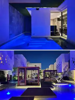 The entire hotel is mainly composed of three-bedroom villas and four-bedroom villas, as well as a five-bedroom villa. Each villa has a spacious living space, including multiple bedrooms, living rooms, private dining rooms, and a dedicated entertainment area. Each area is presented in an extremely luxurious and modern design style, perfectly combining comfort and fashion. The interior design adopts an elegant style, equipped with high-end furniture and exquisite decorations, and every space in the villa is filled with a warm and luxurious atmosphere.