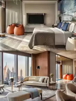 The spectacular rooftop features the longest infinity pool in the UAE, overlooking Dubai's captivating blend of old and vibrant new spaces. Echoing the word "za'abeel" (meaning "white sands" in the local dialect), the rooms are meticulously decorated in neutral tones and soothing desert motifs.