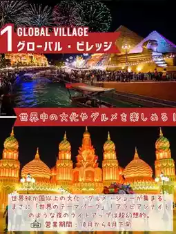 A limited-time theme park where you can experience cultures and cuisine from all over the world! The night lighting is spectacular, and no matter where you take it, it's Instagram-worthy.