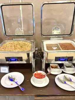 The hotel serves a varied breakfast buffet every morning in the restaurant.