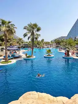 When visiting Dubai, besides the Burj Al Arab, this treasure of a hotel is the top choice: Jumeirah Beach Hotel Dubai, located in the prime coastal area of Dubai, adjacent to the Burj Al Arab and the Jumeirah Madinat hotel complex, stands out with its unique wave-like architectural design, making it one of Dubai's landmarks. The hotel's curved exterior mirrors the waves of the Persian Gulf, and all rooms feature sea-view balconies offering stunning views of the azure waters of the Arabian Gulf. As a flagship property of the Jumeirah Group, the hotel is renowned for its family-friendly amenities and a wide range of water activities, being one of the first in Dubai to pioneer the integrated resort concept.