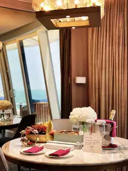 The rooms at Jumeirah Beach Hotel Dubai are decorated in bright marine tones, with some suites offering interconnected room designs perfect for family travelers. Leisure facilities include kilometers of private beaches, multiple themed pools, and the Wild Wadi Waterpark, where guests can enjoy free access to over 30 water attractions, including artificial wave surfing. Dining options feature more than a dozen restaurants and bars with diverse styles, covering Mediterranean, Asian, and Middle Eastern cuisines, with the beachfront grill restaurant being particularly popular for its fresh seafood dishes.
