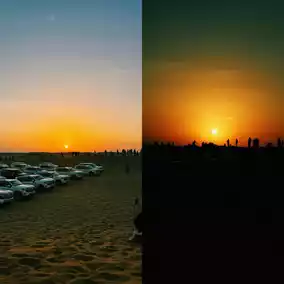 The sunset seen in the middle of the desert is truly an unforgettable scene.