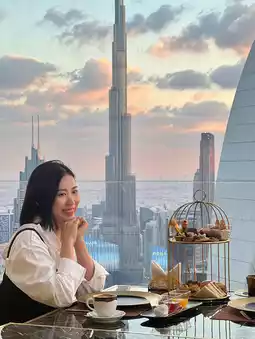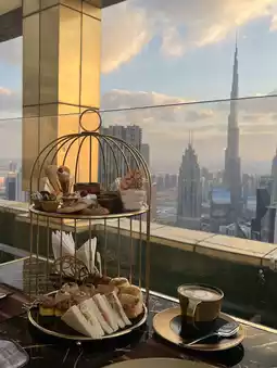 📍 Afternoon tea is served at the 'Highest View Lounge' on the hotel's top floor. Price: AED 169 (for 2 people, includes tea or coffee) / AED 199 (for 2 people, includes mocktails).
