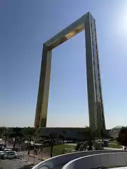 The Dubai Frame is one of Dubai's iconic tourist attractions. To enter the park where the Dubai Frame is located, you need to pay an entrance fee 😂. Since we only had about 30 minutes, we decided not to enter the park and just enjoy the view from outside!
