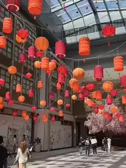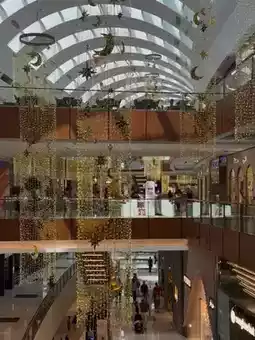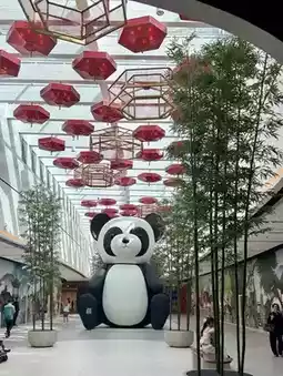 The newly opened Chinatown area in Dubai Mall is located on the first floor, across from the ice rink. It is popular as a photo spot as it recreates the atmosphere of a Chinese street with red lights, neon signs, and a large panda sculpture.