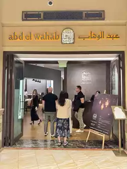 Named after a street in Beirut, Lebanon, AbdElWahab's stylish interior captures a traditional Middle Eastern ambiance. Red lighting and warm wood tones create a luxurious atmosphere.