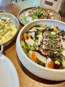 It is seafood-centric, but there are plenty of salads, so you can enjoy a balanced meal.