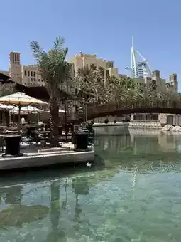 On a day when the warm morning sun bathed Dubai, I arrived at Souk Madinat Jumeirah after a short 5-minute drive from the Mall of the Emirates. As soon as it came into view, I was greeted by an exotic scene that felt like stepping into a medieval Arabian city.