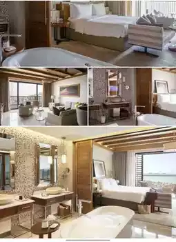 The room design is absolutely stunning! Wooden sliding doors, rattan decor, and soft hues perfectly recreate the warmth and mystery of an Arabian castle🛏️ Sink into the plush bed with stylishly coordinated throw pillows, and open the window to palm tree shadows and azure sea views🌴 The circular mirror and stone sink in the bathroom whisper Arabian flair, while soaking in the tub to the sound of waves makes you feel like you're in a private beach villa—so cozy you'll want to stay in all day🛀 Here, you're not just a guest but the "protagonist" of a Dubai love story, with every inch of space saying, "Welcome to luxury"✨
