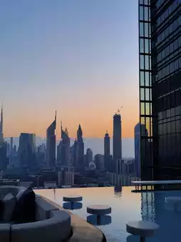 1️⃣ Rooftop Infinity Pool: Best visited at sunset with views of Burj Khalifa and Burj Al Arab