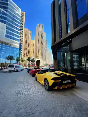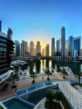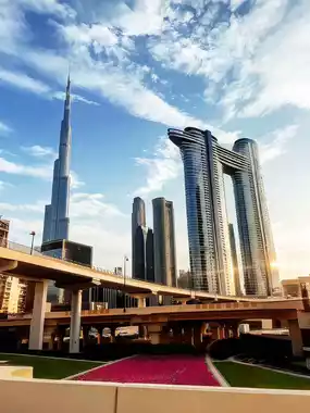 Strolling along the waterfront, the artificial canals and fountains shimmer, and yachts slowly pass by, their waves reflecting the city's bustling life. Between the skyscrapers, the streets bustle with activity, luxury shopping malls and unique cafes line the streets, and the spices and silks of the traditional Arabic souks perfectly blend the ancient and the modern. As the afternoon sun shines, the golden dust and the glass of the skyscrapers interplay, creating a sense of the warmth of the desert and the cool light of the city.