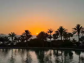 The waterways of Madinat Jumeirah in Dubai offer a hidden gem for sunset viewing. In the evening, take a traditional Arabian wooden boat (Abra) for a 5-kilometer canal cruise. The blue-and-white striped buildings and palm tree shadows along the banks, combined with the silhouette of the Burj Al Arab reflected on the water, create a moving canvas of pink and golden hues in the twilight sky.