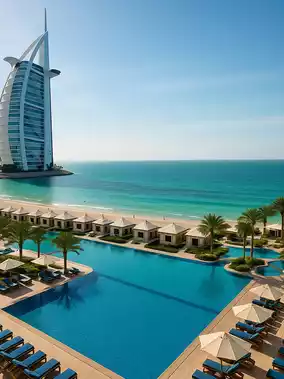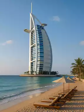 • Located on its own island, connected by a private bridge from Jumeirah Beach Road.