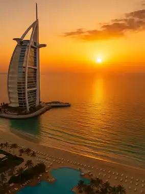 Rising from its own private island, the Burj Al Arab is one of the most iconic hotels in the world and a symbol of Dubai’s modern luxury. With its sail-shaped silhouette, gold interiors, and unmatched hospitality, it’s often called the “world’s only 7-star hotel.” Even if you don’t stay here, experiencing its grandeur—whether through fine dining or a beachside view—is unforgettable.