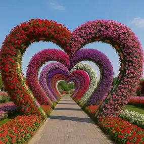 • Heart-shaped Arches – A dreamy walkway lined with colorful blossoms, perfect for photos.