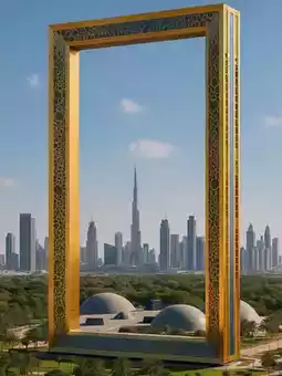 Rising high in Zabeel Park, the Dubai Frame is one of the city’s most striking landmarks – a massive golden structure shaped like a picture frame. It offers visitors a unique journey through Dubai’s past, present, and future, all while showcasing breathtaking views of the city skyline.